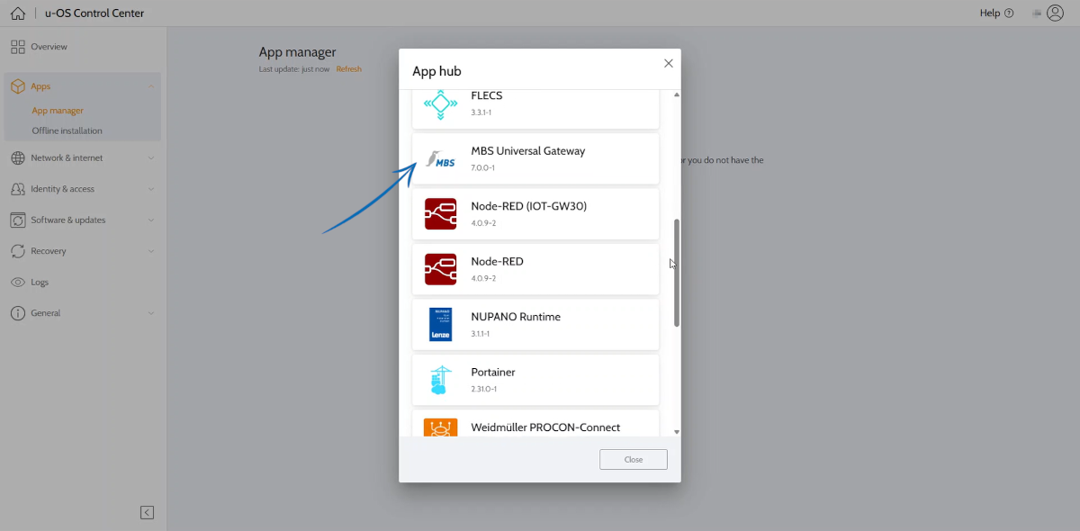 Um das V-Gateway zu installieren, muss die App “MBS Universal Gateway” gewählt werden.
