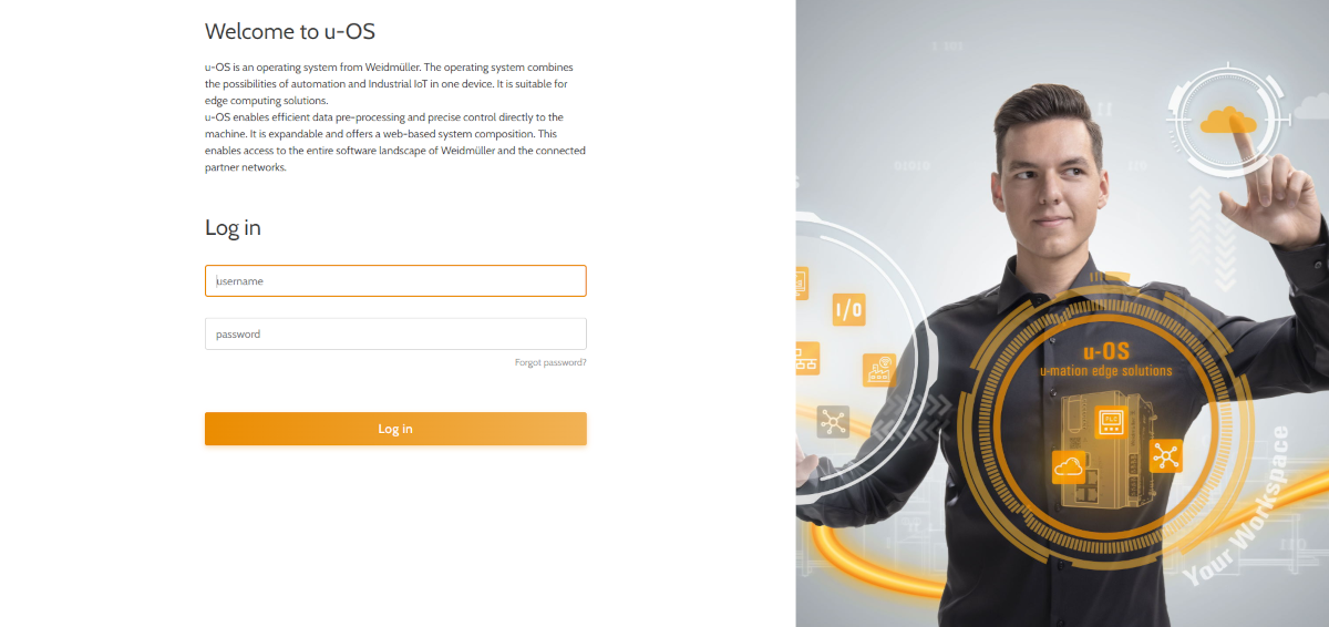 Zunächst ist das Anmelden am Weidmüller Gerät erforderlich.